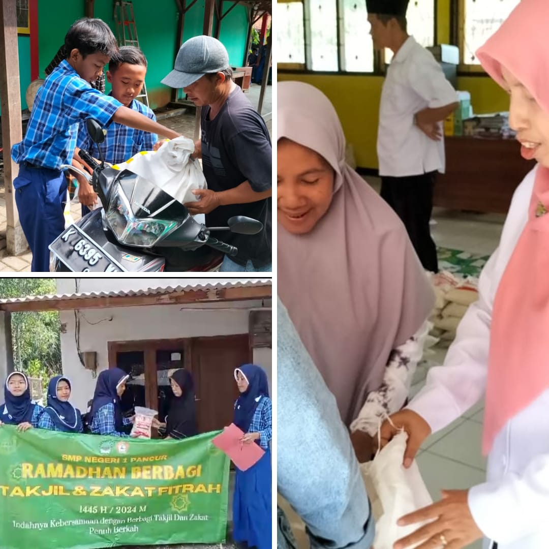 Pada hari Rabu, tanggal 3 April 2024, perwakilan siswa dan guru SMP Negeri 1 Pancur berkumpul di sekolah untuk menyalurkan zakat fitrah yang telah terkumpul selama bulan suci Ramadan, karena antusiasnya warga SMP Negeri 1 Pancur jumlah zakat fitrah diperkirakan lebih dari 1,5 ton. Dalam acara yang penuh kekhidmatan, zakat fitrah disalurkan kepada warga sekitar yang membutuhkan, beberapa siswa yang kurang mampu, serta sebagian dialokasikan untuk disumbangkan ke masjid-masjid terdekat.