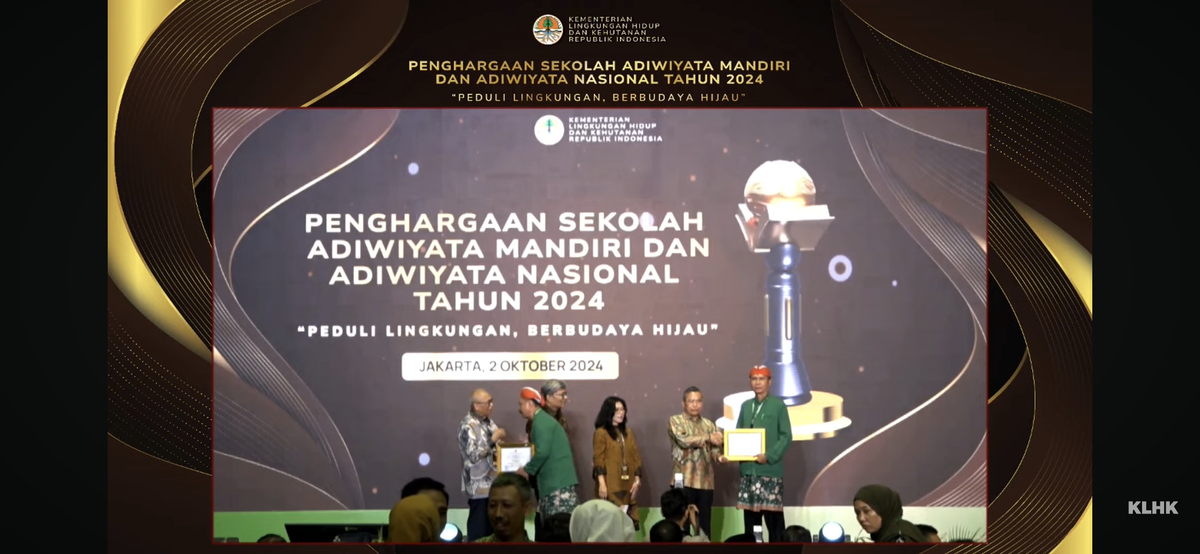 Penghargaan ini diserahkan langsung oleh Wakil Menteri Lingkungan Hidup dan Kehutanan, Bapak Alue Dohong, serta Bapak Drs. Ade Palguna Ruteka, Kepala Badan Penyuluhan dan Pengembangan Sumber Daya Manusia (BP2SDM), didampingi oleh perwakilan dari Kemendikbudristek, Nur Syarifah, S.H. LL.M., dan Ir. Suryo Adi Wibowo, Dewan Pertimbangan Gerakan PBLHS.