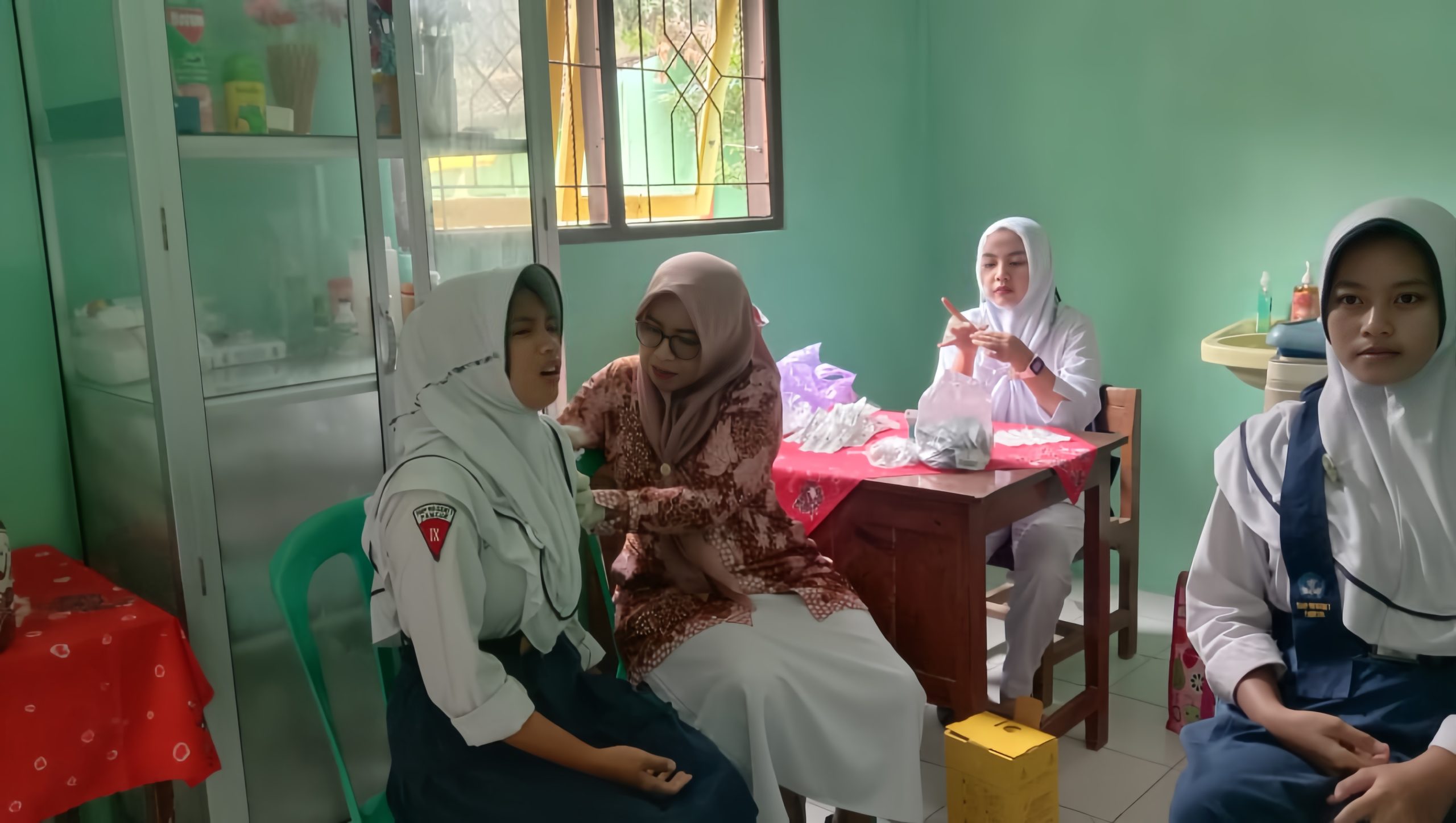 Imunisasi HPV diberikan untuk mencegah infeksi human papillomavirus (HPV) yang berisiko menyebabkan kanker serviks dan beberapa penyakit menular seksual. Sasaran imunisasi kali ini adalah siswa perempuan berusia 9-14 tahun. Proses penyuntikan dilakukan secara intramuskular di lengan kiri atas, sesuai standar medis.