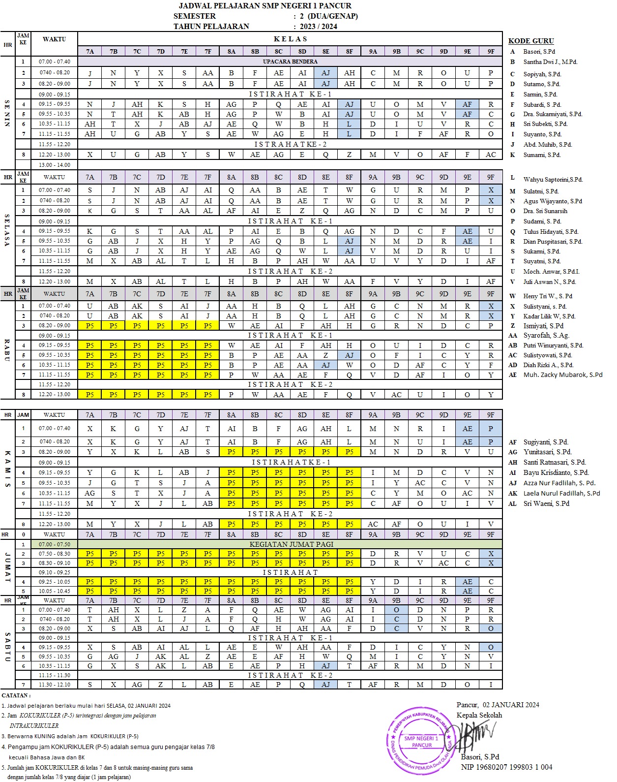 Berikut adalah jadwal pelajaran terbaru Tahun Ajaran 2023/2024